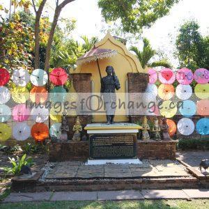 Umbrellas and Statue