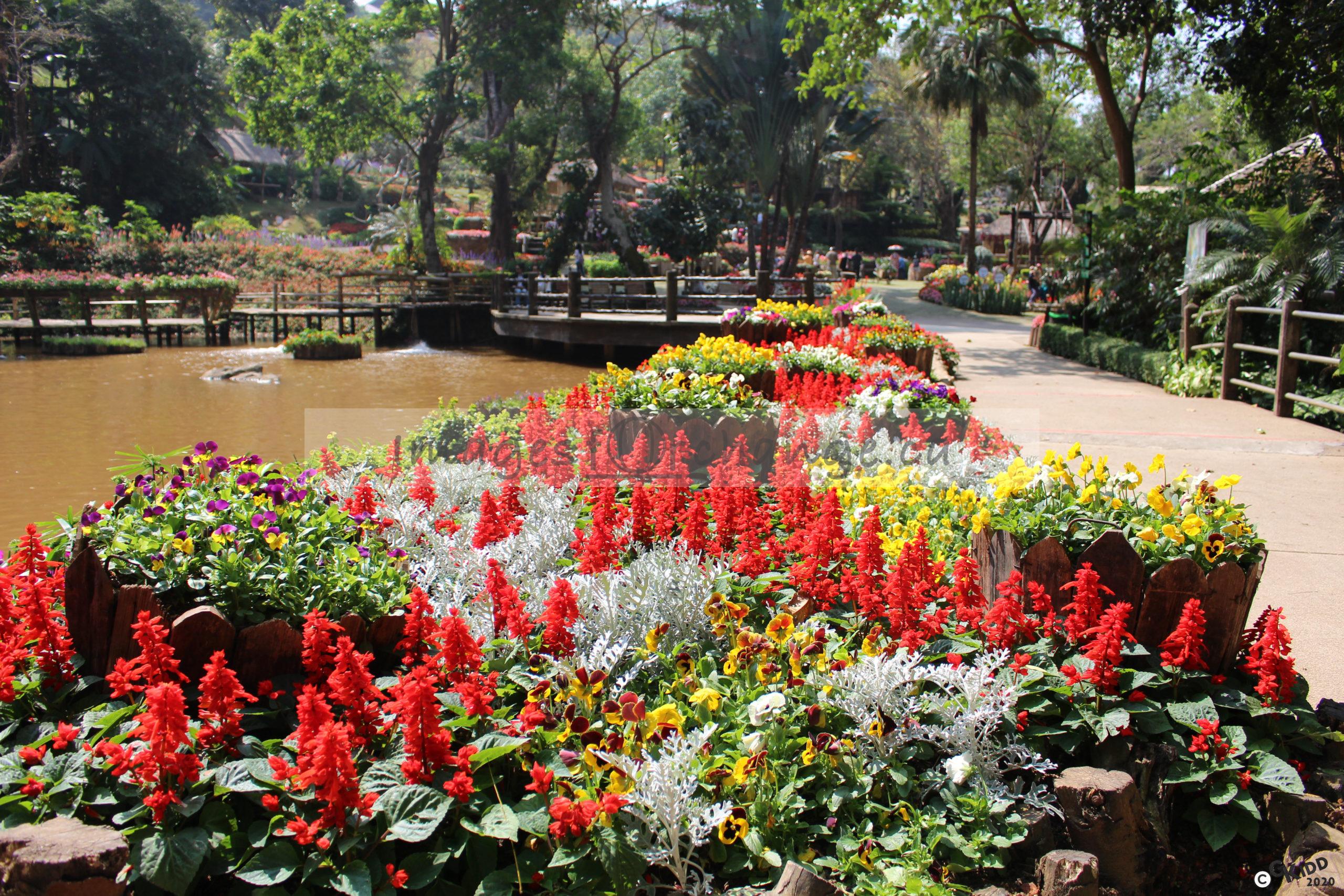 Red Flowers by the Pond
