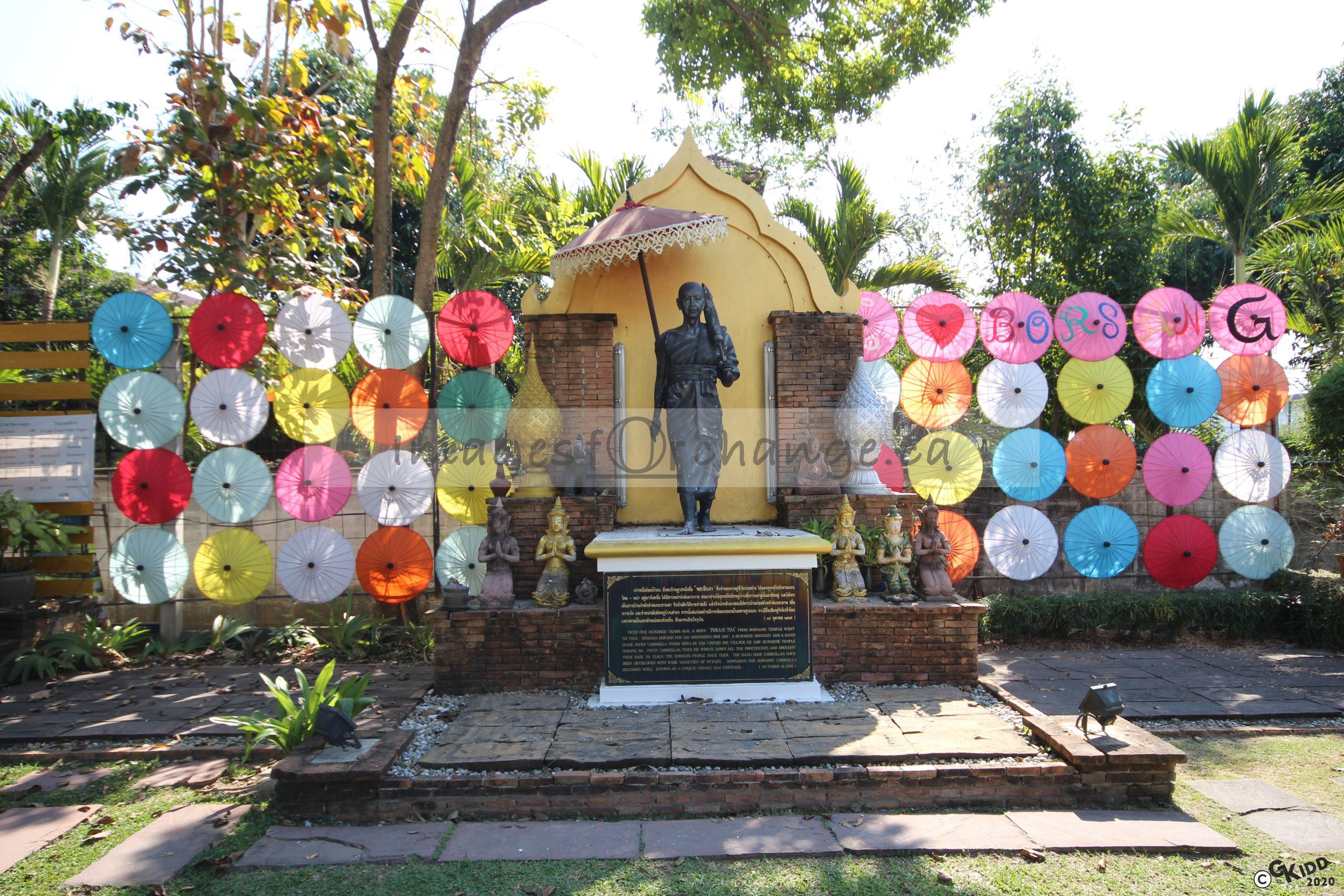 Umbrellas and Statue